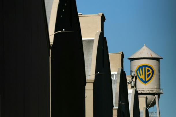 The WB water tower is seen at Warner Bros. Studios, in Burbank, California as Netflix unveils massive takeover