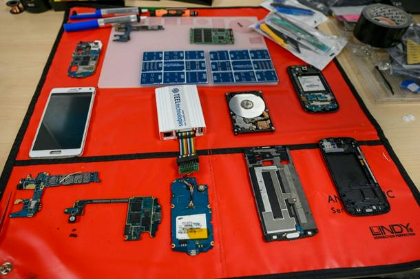 Another office in the complex studies emerging online threats, while a digital forensics lab extracts and analyses data from electronic devices like laptops, phones and even cars.