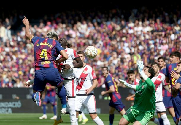 Barcelona edged Rayo Vallecano with Ronald Araujo heading home the only goal of the game