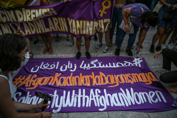 A protest for Afghan women's rights in New Delhi in 2021, the year the Taliban returned to power