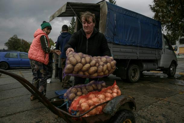 While she was buying a cabbage from a makeshift street stall, the seller interjected to address the prospect of Russia recapturing the area: “Once was more than enough.”