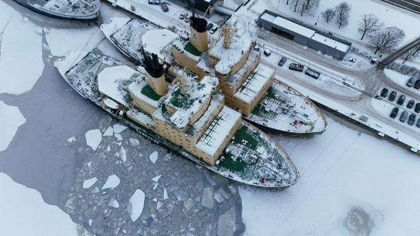 Most of the world's icebreakers are built in Finland - like the Urho, Kontio and Sisu, moored in Helsinki