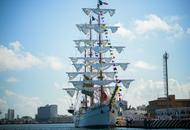 The Mexican naval training ship that crashed into the Brooklyn Bridge in May, leaving two crew members dead, returned …