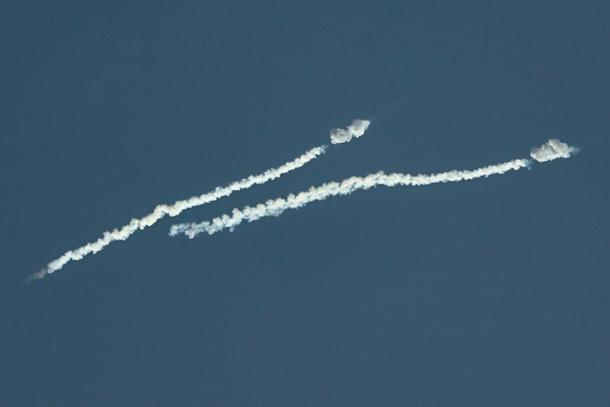 Smoke from a reported rocket interception is seen in the sky over Abu Dhabi