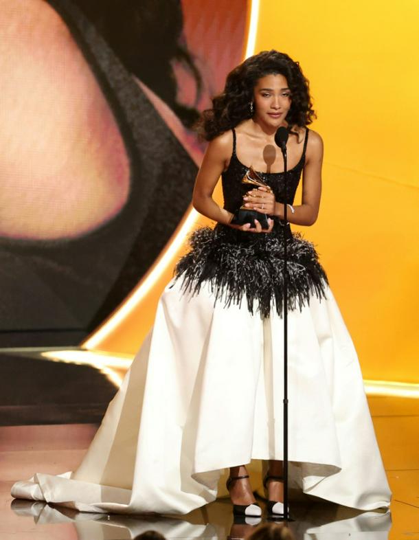 British singer-songwriter Olivia Dean accepts the Grammy for Best New Artist