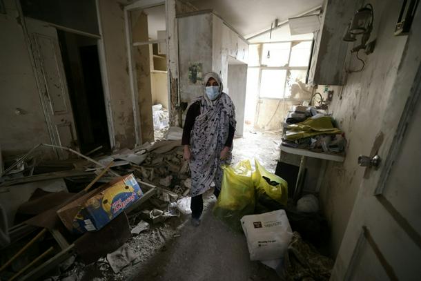 An Iranian woman collects belongings from her destroyed home following a military strike on Tehran on March 15