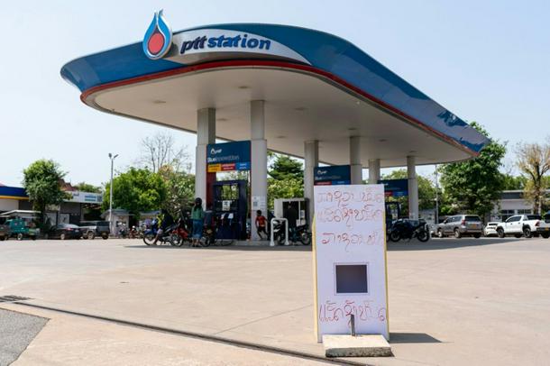 'Diesel run out and gasoline run out' reads a sign at a gas station in Vientiane in Laos on March 10, 2026