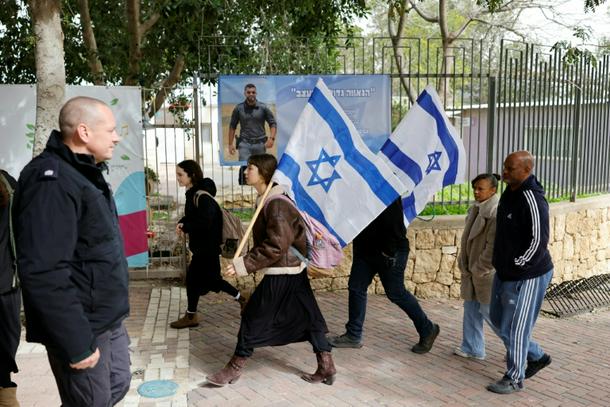 Hundreds of onlookers clutching Israeli flags had lined the roads as a convoy carrying Gvili’s body headed from the military base Camp Shura in central Israel towards Meitar under an overcast sky.
