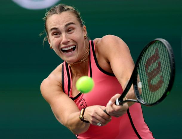 Dominant wi: World number one Aryna Sabalenka of Belarus on the way to a victory over Japan's Himeno Sakatsume at Indian Wells