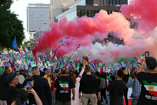Many protesting in the Californian city chanted slogans in support of the US president and Reza Pahlavi, the son of the former Shah of Iran who was deposed by the popular uprising in 1979.