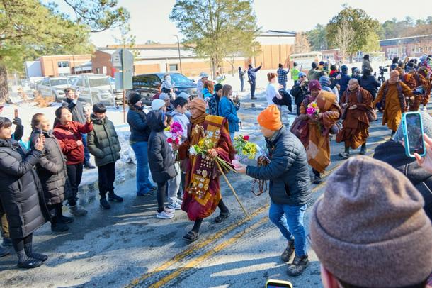 At a time of strife and political tension in the United States, the monks offer a change of tone on their 2,300-mile (3,700-kilometer) odyssey across eight states through freezing temperatures and along ice-covered roads.