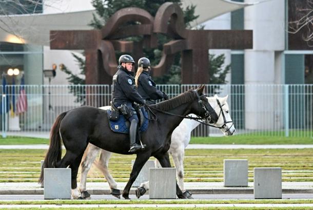 Police on the roof of the chancellery ahead of the visit by Ukrainian President Volodymyr Zelensky