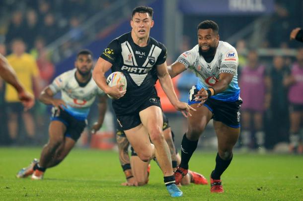 Joey Manu in action for New Zealand at the 2021 Rugby League World Cup, held in 2022