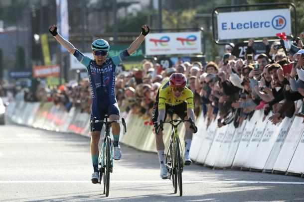 Lenny Martinez (L) pipped overall champion Jonas Vingegaard (R) in the two-up sprint to decide the Paris-Nice eighth and final stage