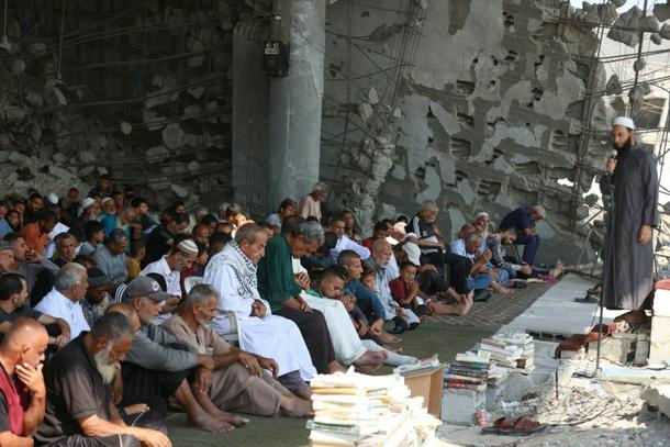 Palestinian Muslims took part in Friday prayers this week despite many of their mosques being redcued to rubble