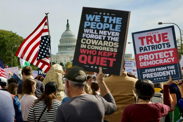 “I never thought I would live to see the death of my country as a democracy,” 69-year-old retiree Colleen Hoffman told AFP as she marched down Broadway in New York.